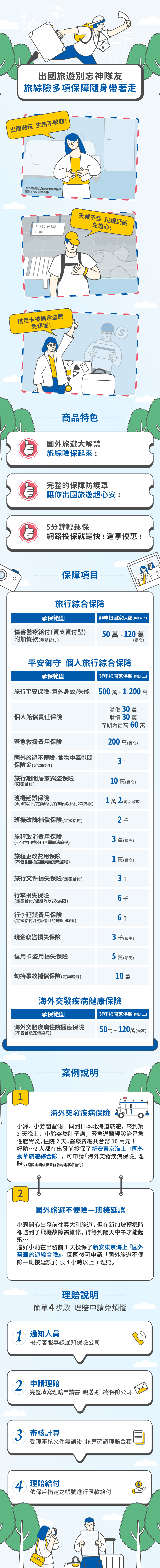A2:不行唷!線上投保旅平險有限制是必須從台灣境內出發的行程,而且被保險人在投保時也必須是身在國內才行,如果人已在國外就不能投保;同樣的人已在飛機上也是無法投保的,建議在出發前提早投保。