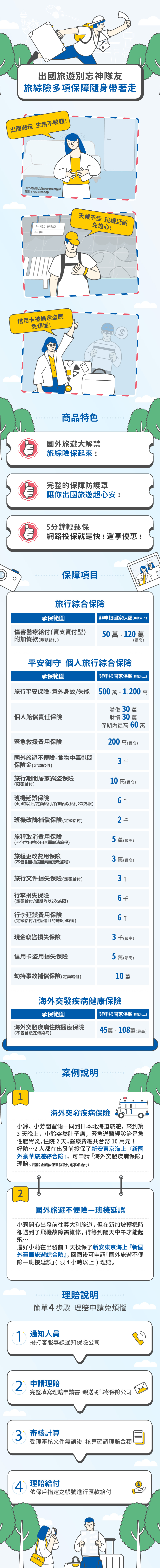 A2:不行唷!線上投保旅平險有限制是必須從台灣境內出發的行程,而且被保險人在投保時也必須是身在國內才行,如果人已在國外就不能投保;同樣的人已在飛機上也是無法投保的,建議在出發前提早投保。
